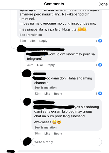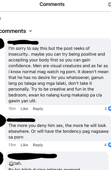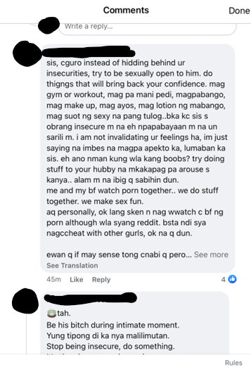 Fig. 12. Facebook replies to anonymous Group member of Tita Talks PH. Mar. 2022, Facebook. Accessed 1 Apr. 2022.