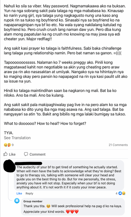 Fig. 14. Response to Group member of Tita Talks PH. Mar. 2022, Facebook. Accessed 1 Apr. 2022.